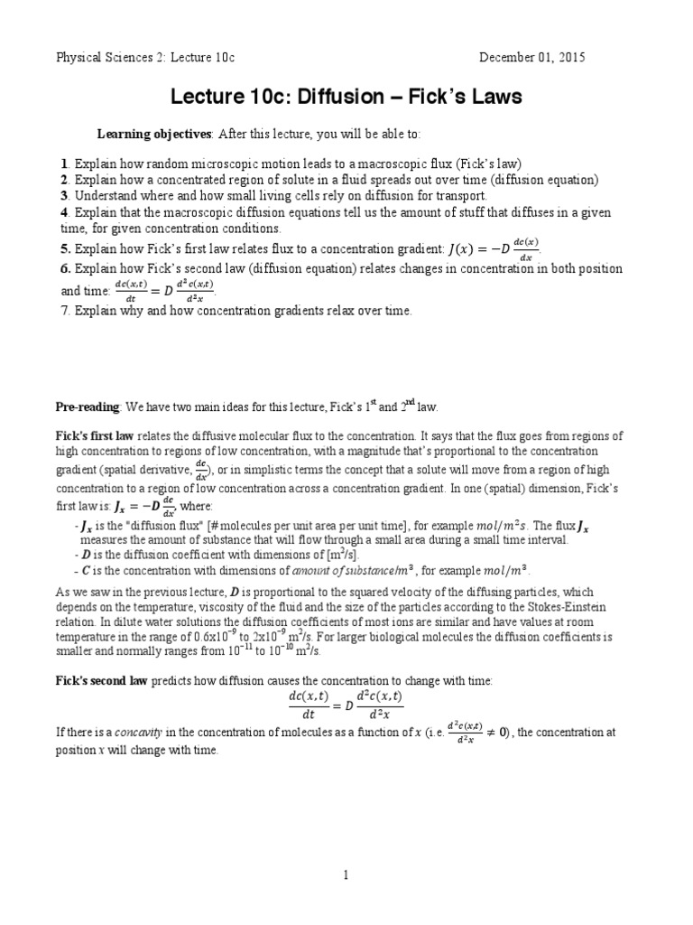 Dec 1st 2015 L10c Diffusion Ficks Laws 2 Diffusion Brownian Motion