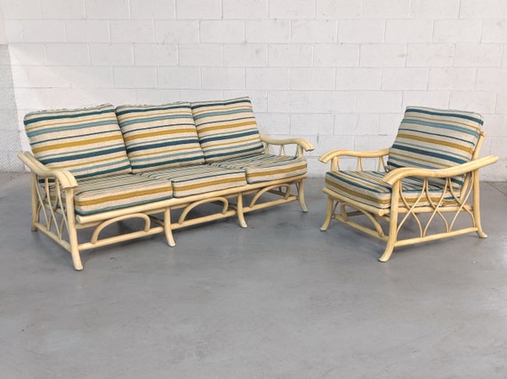 1960s Vintage Ficks Reed Style Rattan Sofa Set Etsy